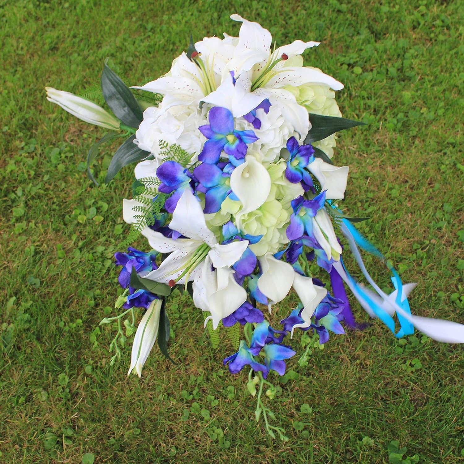 Amazon Com Silk Blooms Ltd Royal Blue Orchid Ivory Calla Lily Rose Cascading Bouquet Home Kitchen from images-na.ssl-images-amazon.com Bridesmaids in black dresses along waterfront. If you're looking for a wedding bouquet filled with one of a kind blooms, we have the perfect petal all picked out. See more ideas about wedding, bouquet, lily bouquet. Wedding bouquets with orchids and other blooms. Bouquet finished off with large iridescent and clear crystal brooch. See more ideas about orchid bouquet, orchid bouquet wedding, orchid wedding. Check out this ivory lily, rose and orchid bouquet and see more inspirational photos on theknot.com. Tied off in a luxury white satin ribbon, with clear crystal pins.